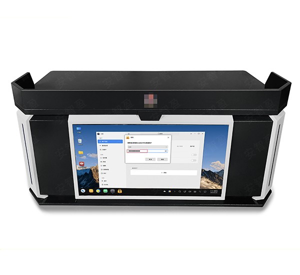 ②桌体正前方可加装7.5cm直径jing徽、摄像头、音响、录音等设备,也可加装43寸示证屏,方便嫌疑人查看须知问题;