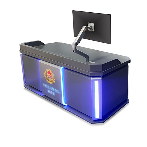 ②桌体正前方可加装7.5cm直径jing徽、摄像头、音响、录音等设备,也可加装43寸示证屏,方便嫌疑人查看须知问题;