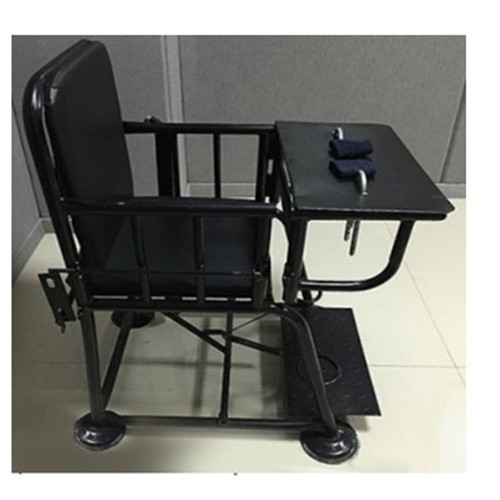 3、椅子设有小桌板,方便放置审讯所需的文件、笔等物品,提高审讯效率。坐垫和扶手板全部采用铁质钢板,上部采用U型锁,安*全性能高,靠背和坐垫为you质皮革包裹,重量100斤。