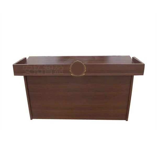 该审讯桌采用家具板制作,硬度高,保证在全国各地区不变形不裂纹(有多种颜色可选,此桌颜色为04,若要其他颜色需另说明),此桌不适合做其它办公使用,四个桌斗,后方可轻松入坐两位办案人员,桌子面上留有穿线孔,正前方装有可调节高亮度极光灯,确保审讯过程中的照明需求。前上方安装20公分铝质立体jing徽,彰显权威性与严肃性,整体设计简约、大气,也可全部软包或局部软包处理(需另说明)。