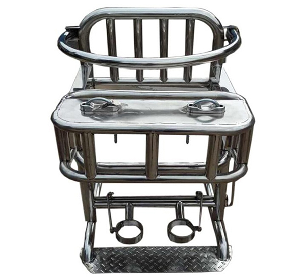 该审讯椅设计坚*固,采用不锈钢材质,具有良好的耐*用性和安*全性。图片中可以看到审讯椅的结构,包括座椅、靠背和脚踏部分,整体设计旨在确保被审讯人员的安*全和稳*定。