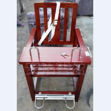 简要描述: 规格:高1020mm,宽度560mm产品特点:该椅子采用橡木材质,具有良好的强度和耐久性。椅子坚固耐用,上部装有锁具,钥匙通用,下部不用钥匙,锁具中间有拉杆控制两端锁环,操作简单,双脚不会从锁环拔出。所装锁具及钥匙为定制,增加了使用的专*属性和安*全