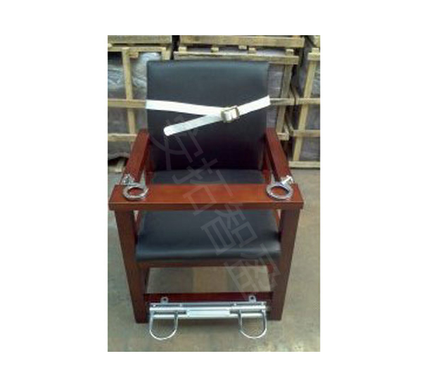 该椅子采用木质框架,座位部及靠背软包处理,提供一定的舒适性。两边扶手(主料)上固定有不锈钢手kao,前方装有签字板,前下方装有脚*锁,锁具中间有拉杆控制两端锁环,双脚绝对不会从锁环拔出,脚*锁操作简单牢固,确保审讯过程的安*全和秩*序。椅子四腿部有膨胀丝固定片,靠背装有绑定上身的安*全带,防止前倾自残。