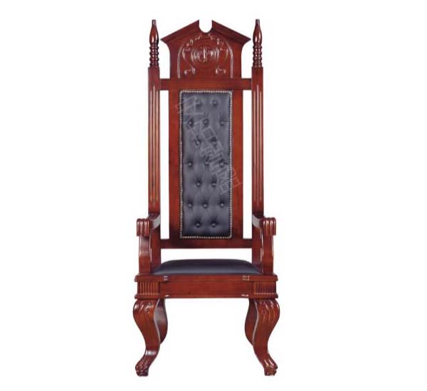 这是一款书记椅(法官椅)。该椅子设计庄*重,适合用于fa院、会议室等正式场合。椅子框架采用实*木制作,坚*固耐用,表面经过精*细打磨和上漆处理,呈现出红棕色的光泽。坐垫和靠背部分采用深色皮革包裹,内部填充高密度海绵,提供舒适的坐感。靠背中央有一块装饰性的皮革面板,边缘有缝线装饰,增加了美观性。椅子的靠背较高,两侧有立柱支撑,顶部有弧形装饰,整体造型稳*重典雅。椅子的四条腿呈弯曲状,增加了稳定性。