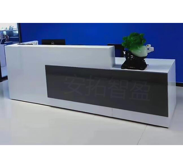 简要描述: 该接待桌采用高密度板材,确保了产品的坚固性和耐用性。表面经过烤漆处理,漆面均匀而且硬度大,不仅提升了外观的美观度,还增强了表面的耐磨性和抗污性。木纹纹理清晰,无发白、流挂及明显划伤,色泽均匀、光滑耐用可长期保