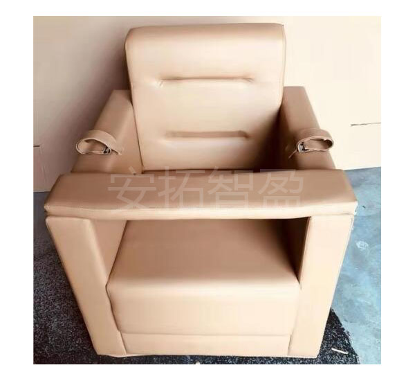 简要描述: 该款全软包醒酒椅询问椅,适用于讯问、询问嫌疑人醒酒用。实木结构、全皮软包,其设计简洁实用。具有耐磨、防划、透气、透汗的特点。前方有签字板,可打开,加厚木板软包,椅子四周全为加厚软包,无一处手感发硬,且做工非常
