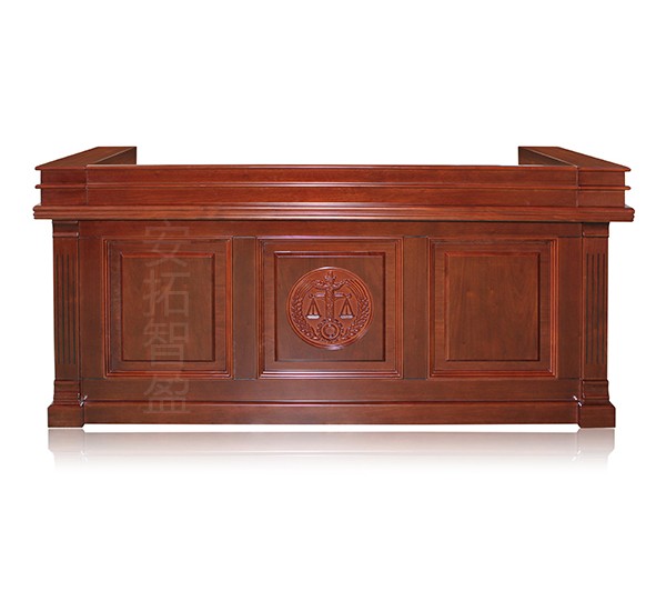 4、浮雕装饰:前挡装饰板采用数控雕刻工艺制作法院标志浮雕,细节清晰、轮廓立体,经打磨后与整体木皮饰面质感统一。